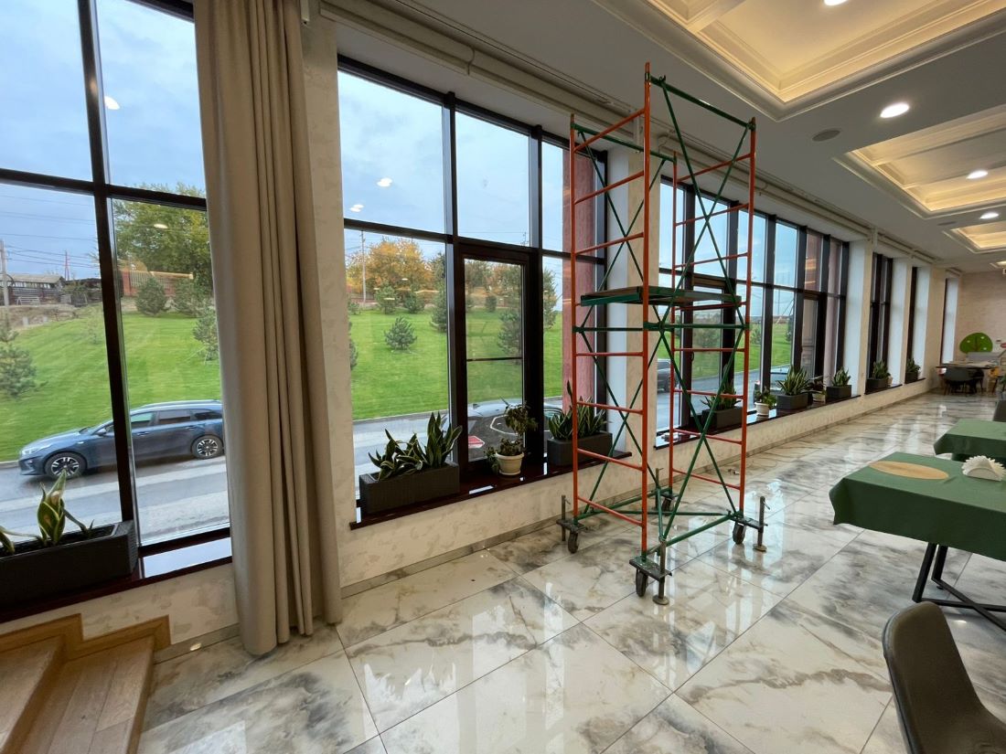 Оснастить просторные окна ресторана стильными и функциональными шторами, которые позволят персоналу легко и быстро управлять уровнем освещенности в зале, создавая идеальные условия для гостей в любое время суток.