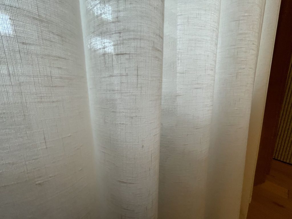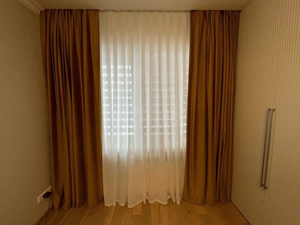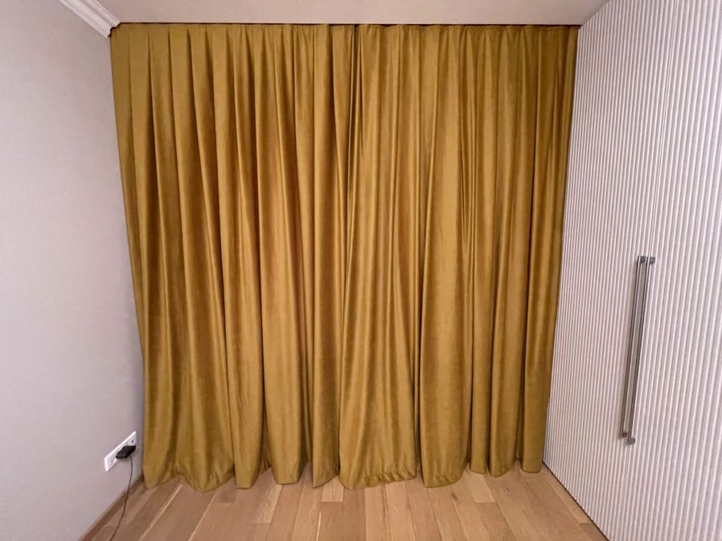 Несмотря на необходимость подбора материалов из разных коллекций, мы уложились в комфортные для заказчика сроки: поставка всех тканей заняла всего две недели. После этого наши специалисты выполнили точный раскрой и пошив штор под высоту комнаты.