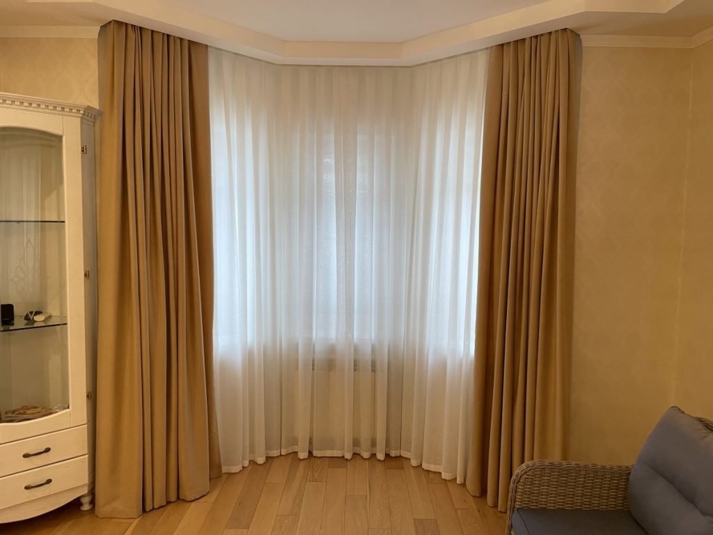 Пошив штор на заказ, поставка и монтаж профильных карнизов в частном доме в коттеджном поселке Владимирская Слобода.